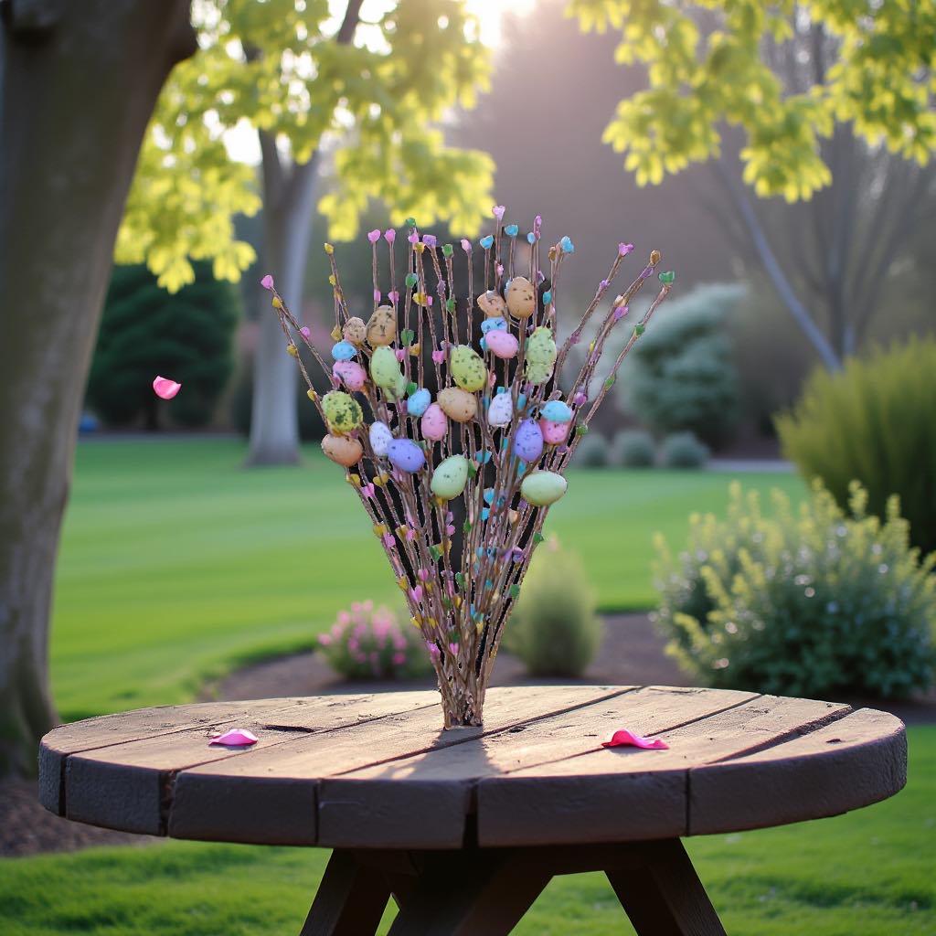 The Artificial Easter Spray Vine is a decorative set of 26 pieces featuring twig branches adorned with pastel Easter eggs, berries, and floral accents. These spring-themed floral stems are perfect for Easter centerpieces, wreaths, floral arrangements, and home décor. Made of durable and lightweight materials, they add a festive and natural touch to your Easter decorations while being reusable for multiple seasons.