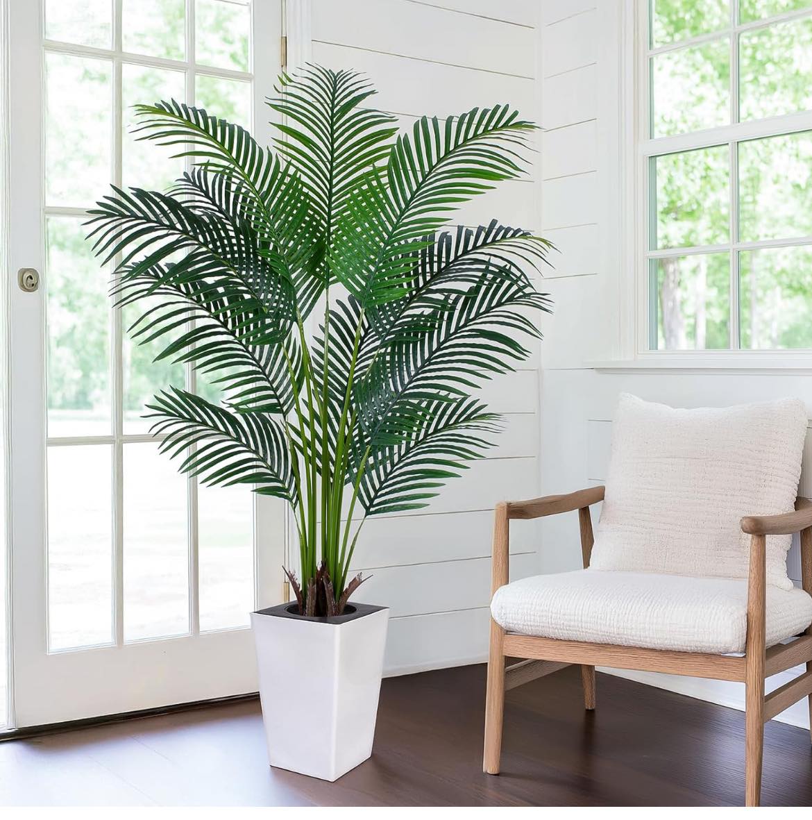 This realistic 5ft artificial palm tree comes in a sleek white tall planter, adding a tropical touch to any space. Made from high-quality silk, it offers a lush, maintenance-free look for homes, offices, living rooms, patios, and more. Perfect for indoor and outdoor decor, it’s a stylish and timeless housewarming gift!