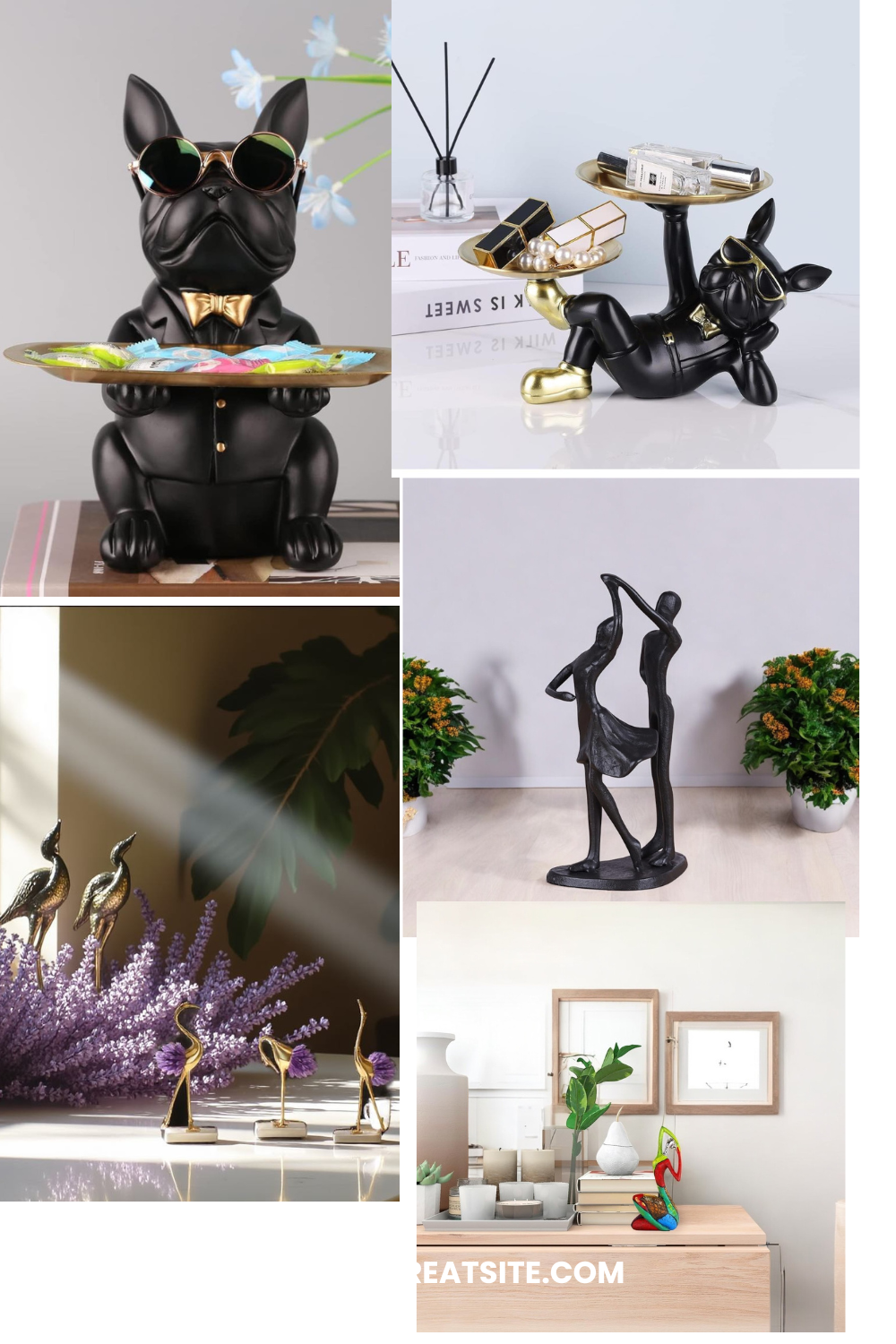 These elegant and decorative home accents add a touch of style, functionality, and sophistication to any space. The Suruim Resin Bulldog Statue with Storage Trays combines modern design with practicality, serving as both a decorative piece and an organizer for small essentials. The Suruim Romantic Cast Iron Couple Statues symbolize love and unity, making them ideal for weddings, anniversaries, or romantic decor. Meanwhile, the Gold Decor Accents - Brass Bird Statues with Crystal Base bring a luxurious, modern aesthetic to living spaces, enhancing the ambiance with their chic and refined design. Perfect for homes, offices, or gifting, these unique pieces elevate any setting with charm and elegance.
