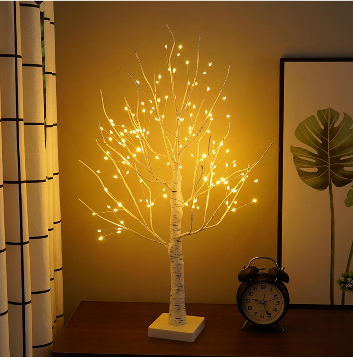 The Suruim Daisy Flower Crystal Ball Night Light features a beautifully preserved red daisy encased in a crystal-clear resin globe, emitting a warm and gentle glow, making it a perfect decorative piece for bedrooms, living rooms, or offices. Ideal as a thoughtful gift for women and girls, this floral night light adds a touch of elegance and nature-inspired charm. Meanwhile, the Uruim 144 LED Lighted Birch Tree Lamp is a stunning decorative spirit tree with adjustable branches and 144 warm yellow LED lights, powered by either USB or batteries, with a built-in timer function for convenience. Perfect for home decor, weddings, or holiday ambiance, this fairy light tree creates a cozy and enchanting atmosphere.