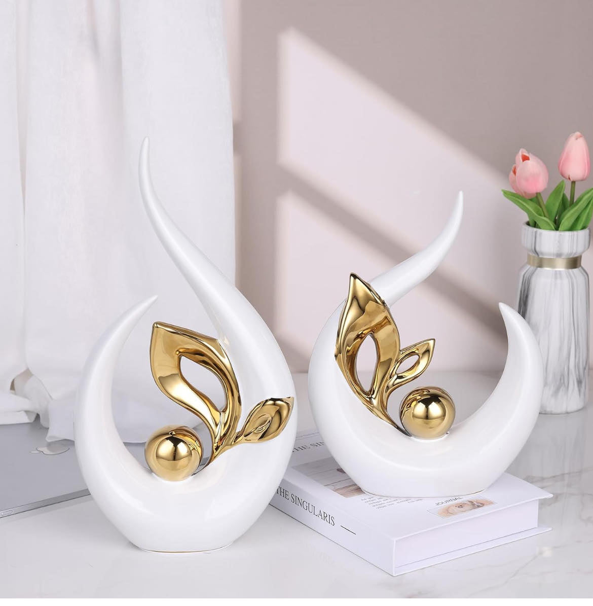 Collection of elegant home décor items, including teal glass vases, coastal-inspired glass sculptures, ceramic abstract art ornaments, and decorative busts. Designed to elevate interior spaces, these pieces blend modern aesthetics with artistic craftsmanship, making them ideal for living rooms, offices, entryways, and bookshelves. The collection showcases a mix of contemporary and coastal designs, offering statement accents that add sophistication and charm to any setting.