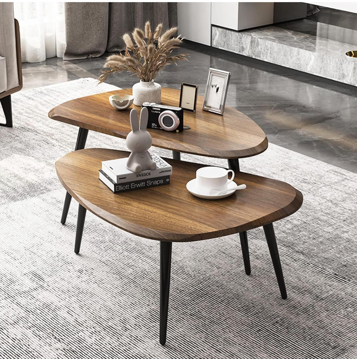 ☕ Mid-Century Nesting Coffee Table Set – A versatile set of two walnut-finish oval tables that can be used together or separately. Perfect as a coffee table, side table, or compact space-saver for apartments, offices, or cozy living areas.